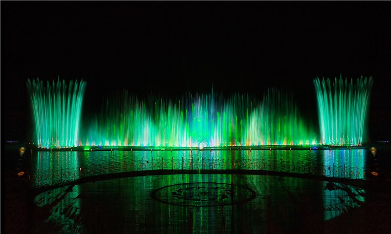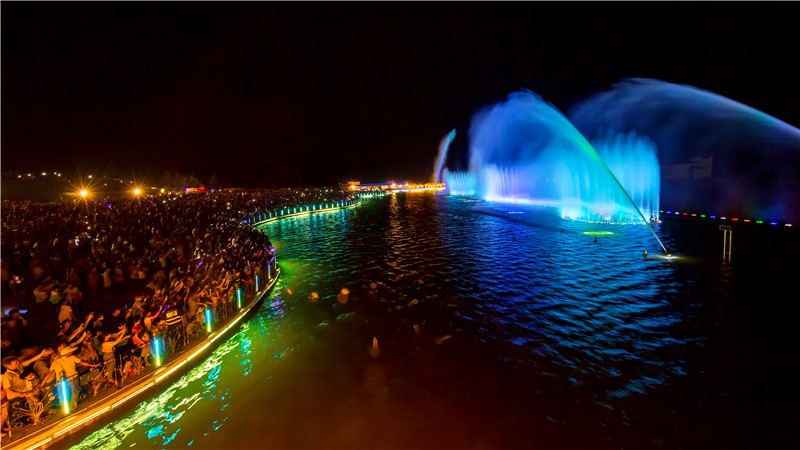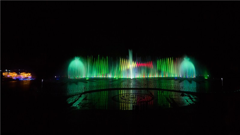 上林云里湖激光水幕噴泉工程:噴泉主噴高達110米,配合其他的3000多組噴頭,組成多樣的銜接,花樣可達到60分鐘不重復。噴泉的造型令人眼花繚亂,伴隨著音樂的節(jié)奏和燈光的變換,代表上林旅游特色的蓮花、銅鼓等水幕造型也出現(xiàn)在在湖面上,呈現(xiàn)出一道靚麗的風景線。