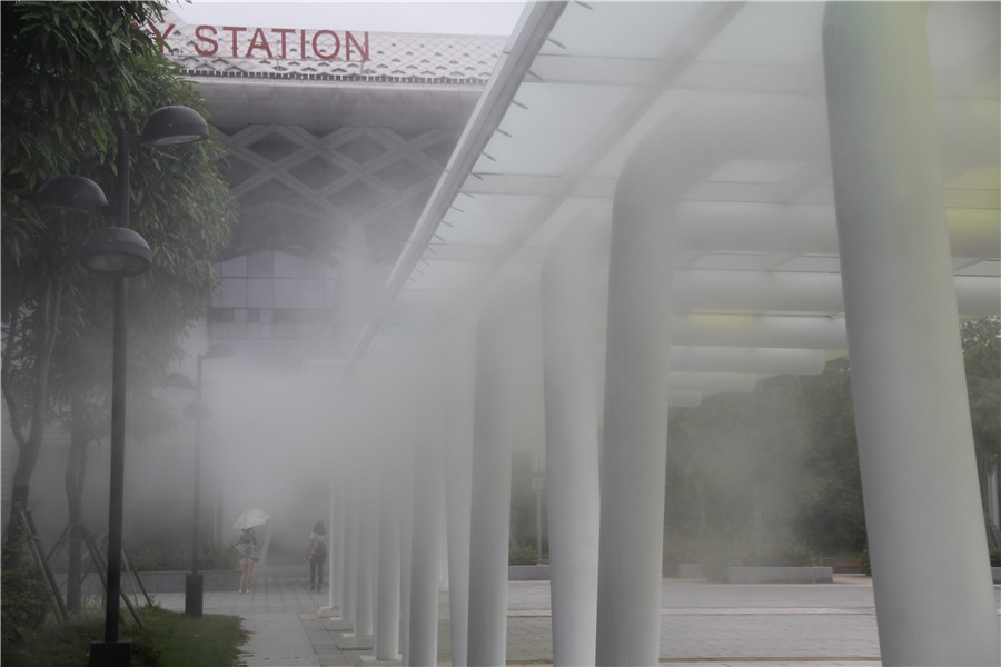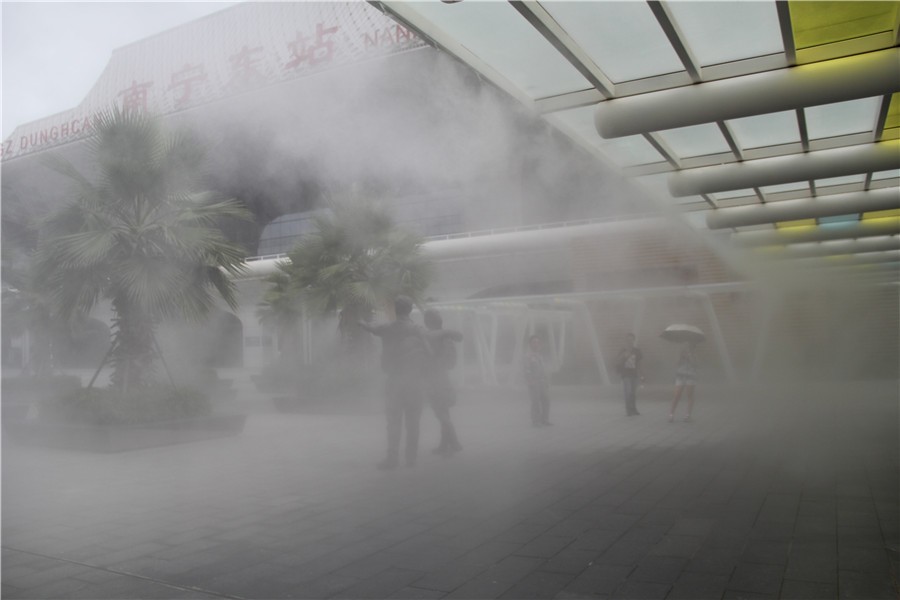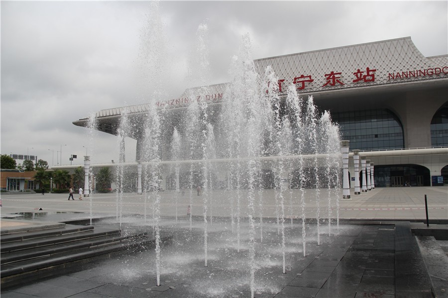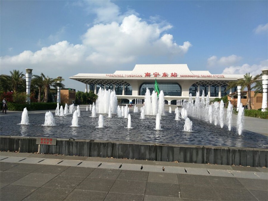 南寧軌道交通集團(tuán)有限公司南寧東站綜合交通樞紐二期工程(地面南、北廣場(chǎng))-噴泉及水處理工程:南寧火車東站位于南寧市鳳嶺新區(qū)東北部,分為南北廣場(chǎng)兩區(qū)域,北廣場(chǎng)景觀以“壯鄉(xiāng)客廳”為主題,雕塑以體現(xiàn)民族風(fēng)情為主,南廣場(chǎng)景觀以“綠城窗口”為主題,雕塑體現(xiàn)“山水綠城”的特點(diǎn),加上噴泉水景,動(dòng)靜結(jié)合,給人們美的享受。