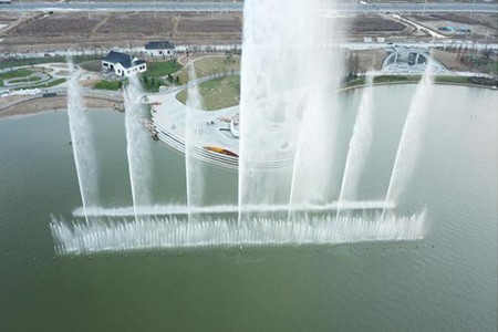 千鶴湖大型音樂噴泉工程設(shè)計(jì)、施工一體化工程:噴泉設(shè)計(jì)13組水型,960只噴頭,1600多盞彩燈,有20多首音樂編程,高噴可達(dá)80多米,次噴可達(dá)60多米。歡快的音樂噴泉以及七彩的燈光,不知不覺熟練而又迷人的“跳起舞來”,形態(tài)各異,給人們多角度高品質(zhì)的聽視覺盛宴。