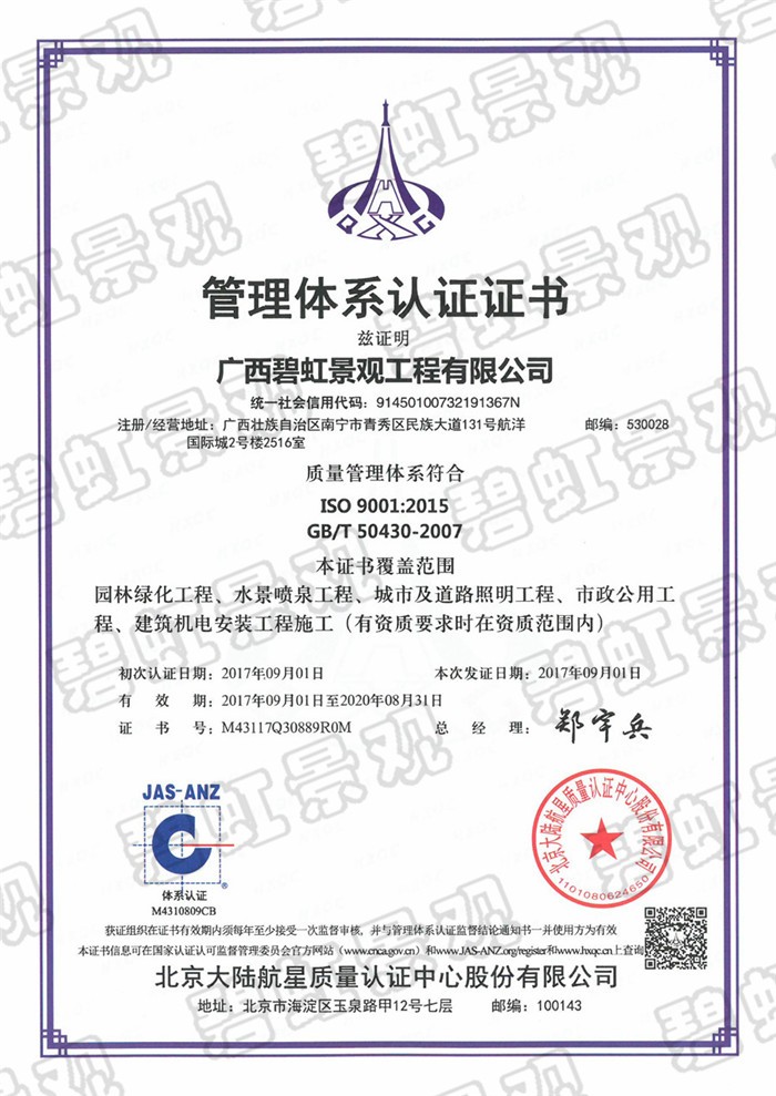 質(zhì)量管理體系認(rèn)證證書(shū)