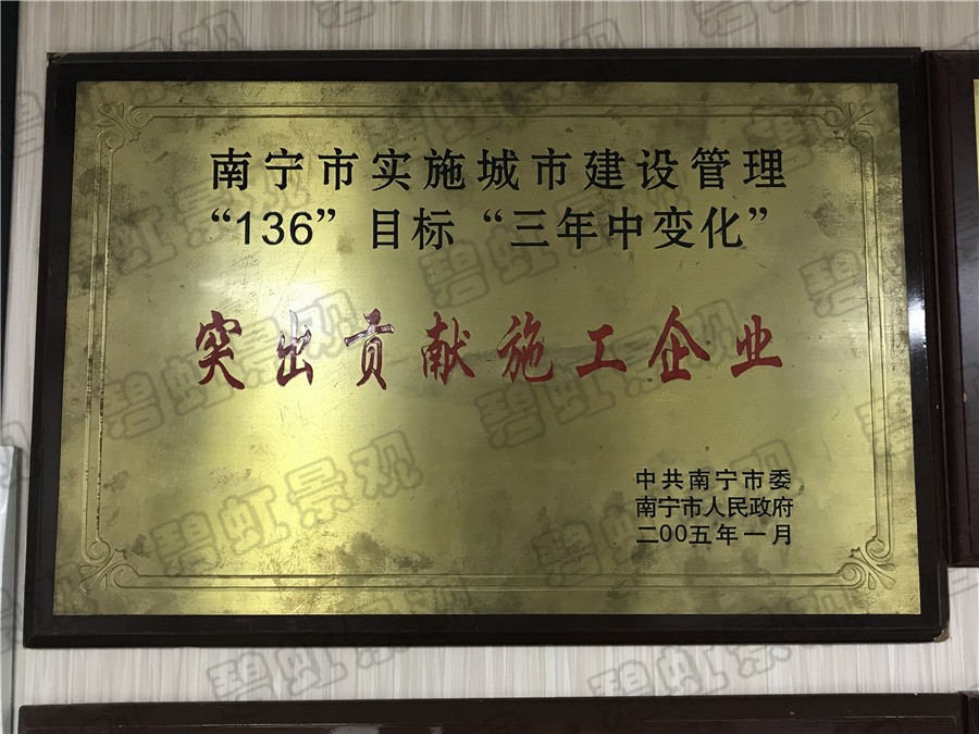 南寧市實(shí)施城市建設(shè)管理“136”目標(biāo)“三年中變化”突出貢獻(xiàn)施工企業(yè)