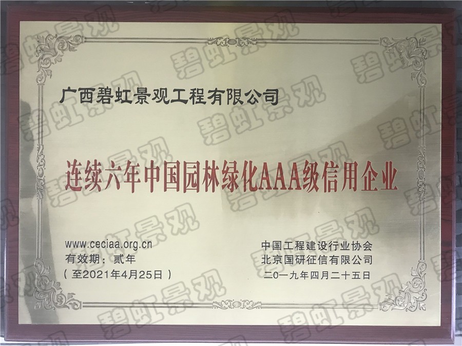 連續(xù)六年中國園林綠化AAA級信用企業(yè)